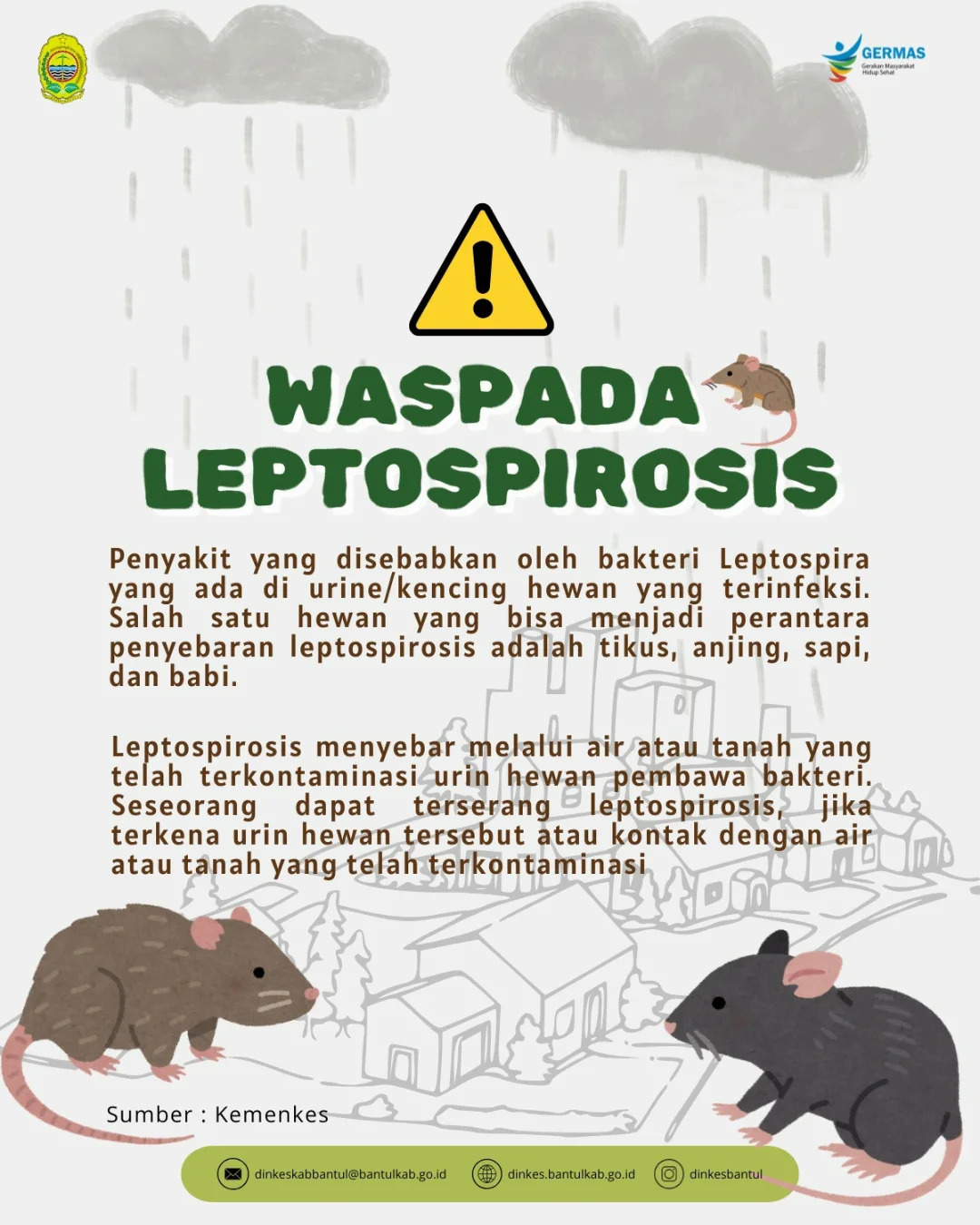 Selengkapnya Waspada Leptospirosis Waspada Leptospirosis ⚠️Penyakit yang di tularkan melalui air atau tanah yang tercemar ...