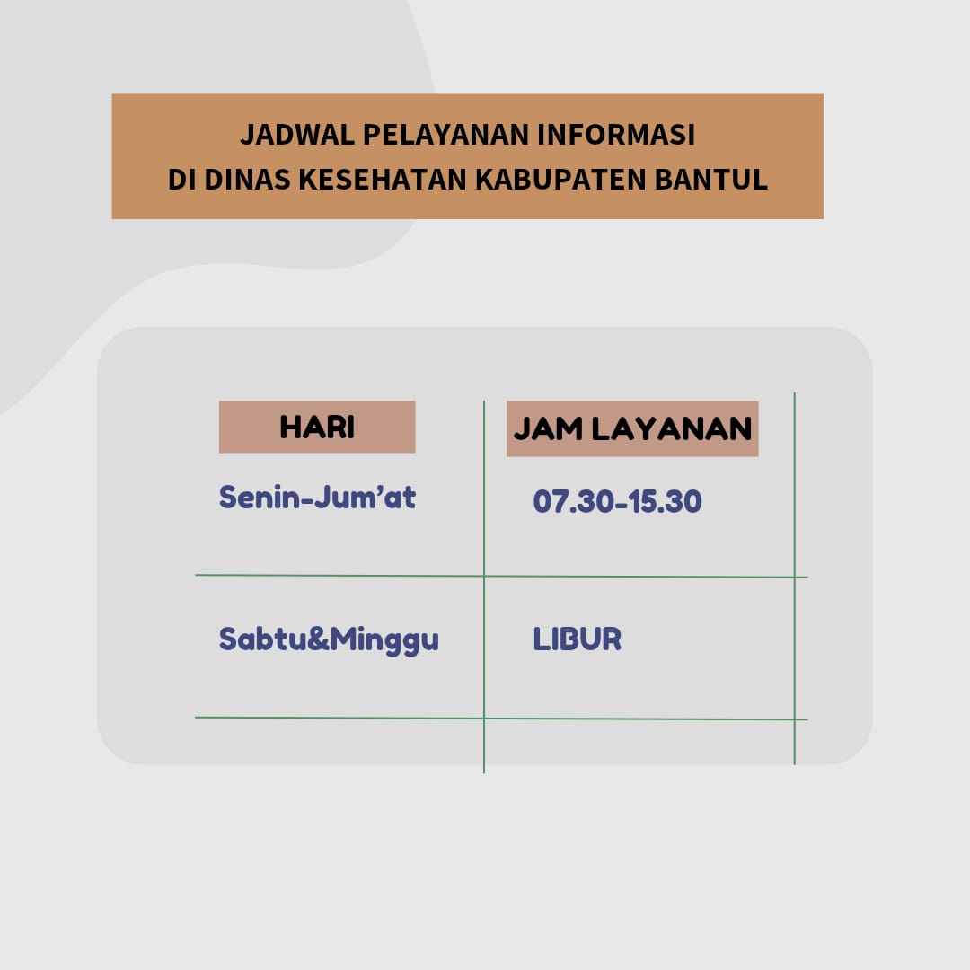 Berikut Jadwal Pelayanan Informasi di Dinas Kesehatan Kabupaten Bantul :