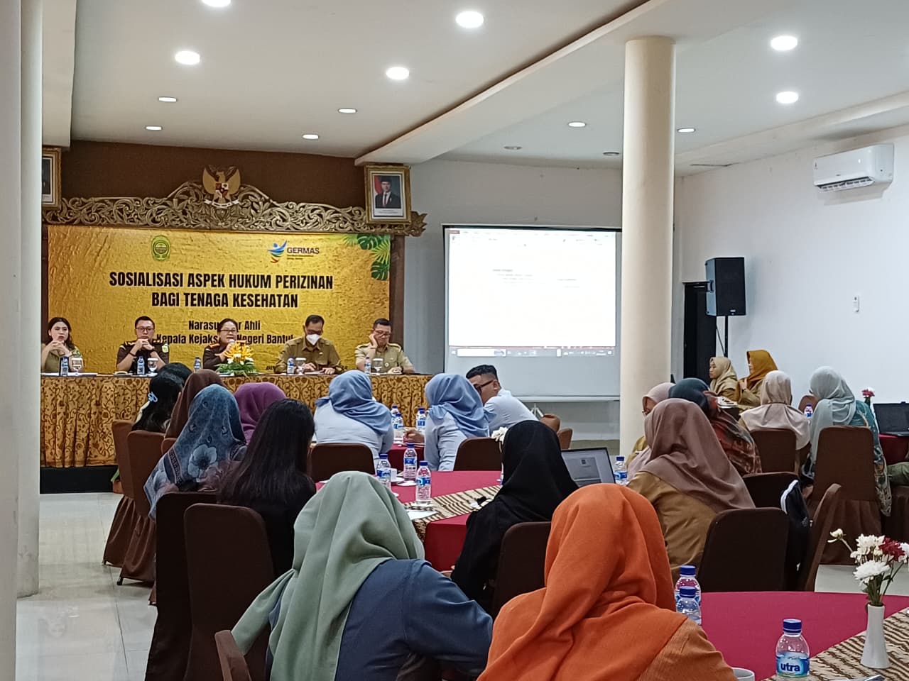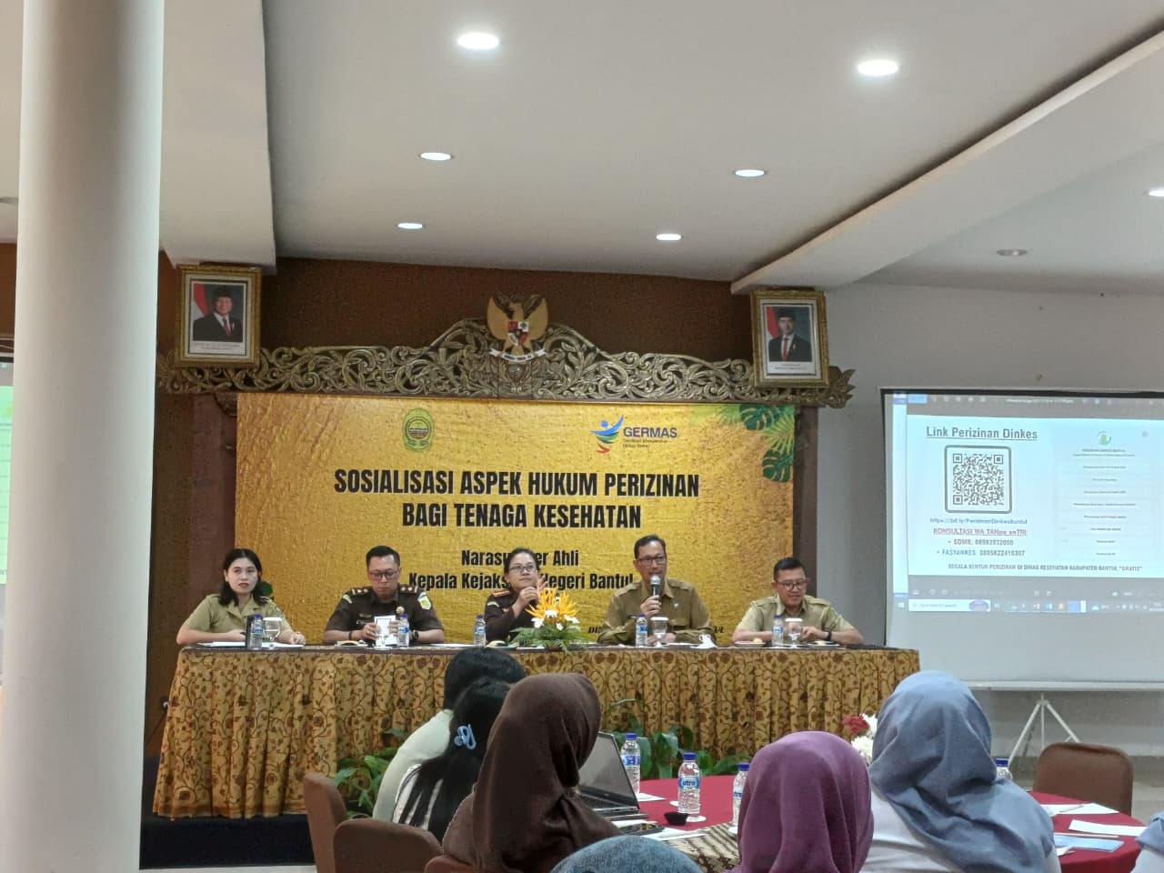 Dalam rangka menciptakan Reformasi Birokrasi yang bersih, Dinas Kesehatan Kabupaten Bantul menyelenggarakan Sosialisasi Aspek Hukum Perizinan Bagi Tenaga Kesehatan pada hari Senin, 8 Desember 2025. Bertempat di Ruang Parangtritis Ros-In Hotel, peserta yang diundang dalam acara ini adalah Kepala Dinas Penanaman Modal dan Pelayanan Terpadu Satu Pintu Kabupaten Bantul, Kepala Satuan Polisi Pamong Praja Kabupaten Bantul, Pejabat Struktural Dinas Kesehatan, Direktur Rumah Sakit se-Kabupaten Bantul, Kepala Puskesmas se-Kabupaten Bantul, Organisasi Profesi se-Kabupaten Bantul, dan Asosiasi Klinik se-Kabupaten Bantul. Sosialisasi ini menghadirkan narasumber ahli yaitu Kepala Kejaksaan Negeri Bantul.